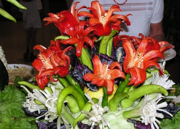 Tỉa hoa từ ớt và hành lá::118: