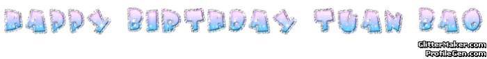 Hân hoan chúc mừng sinh nhật TuanBao. Cầu mong những điều ước của TuanBao đem lại niềm vui và hạnh phúc đến trong cuộc sống của TuanBao.