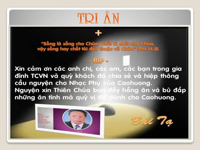 Bố vợ của Caohuong đã về với Chúa, xin anh chị em hiệp dâng lời cầu cho linh hồn cụ Phê Rô