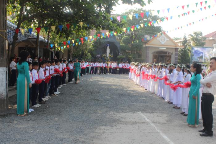 hàng rào danh dự do các em thêm sức đã sẵn sàng, đón chào và chúc tụng đấng nhân danh chúa mà đến