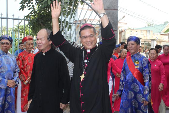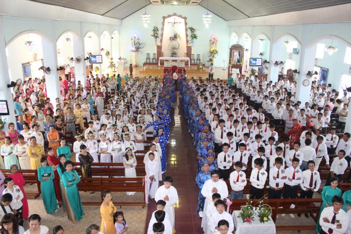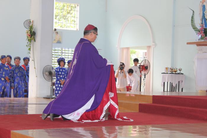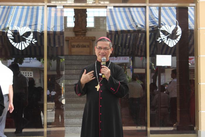 đúng 9h30 sáng đức giám mục thomas phụ tá xuất hiện trong sự vui mừng của cộng đoàn dân chúa