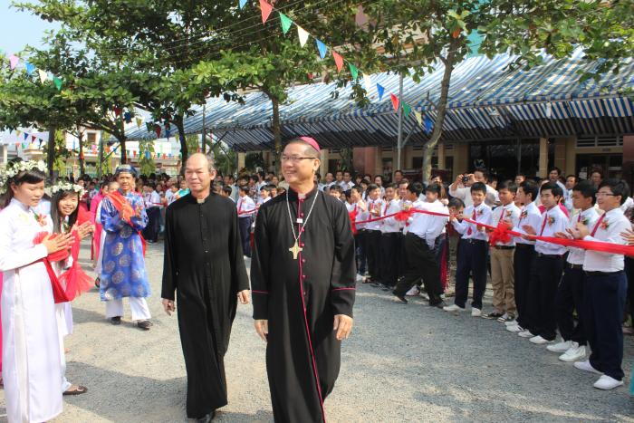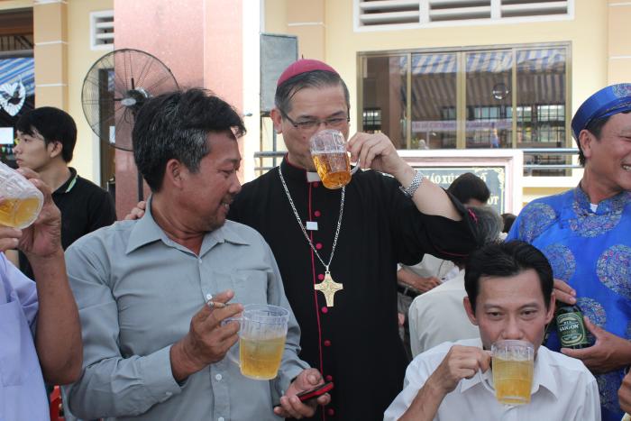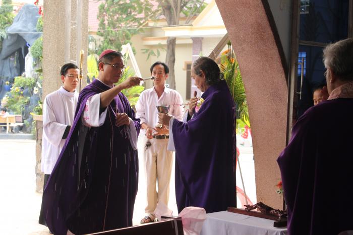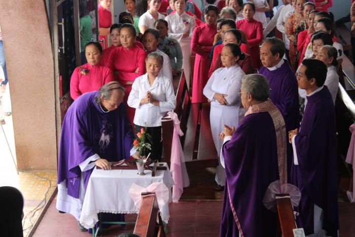 ngài nhẹ nhàng bước đi trong vòng vây yêu thương và kính trọng của cộng đoàn dân chúa xứ bến gỗ