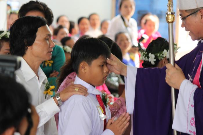 và cuộc rước ngài vào ngôi thánh đường làm lễ ban bí tích thêm sức được bắt đầu.