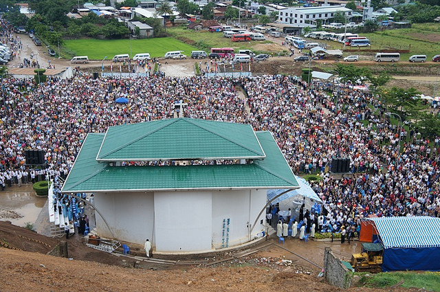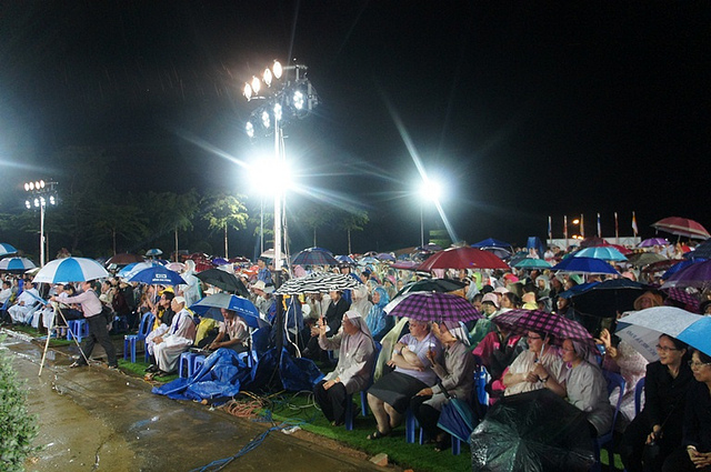 Mặc dù, đài truyền hình đã thông báo về mưa bão, nhưng hàng chục ngàn người vẫn hành hương về bên Mẹ Tàpao ngày 12-13/8/2013.