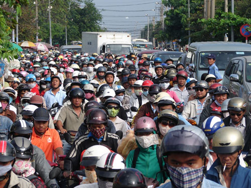 Ở trên cao nhìn xuống người người dày đặc, từng luồng từng luồng cuồn cuộn trôi đi, lâu lâu cụng mũ bảo hiểm một cái rồi mạnh ai nấy đi, cứ như đàn kiến. Đi bộ trên đường nhiều khi gặp người chào hỏi thân thiện mà chẳng biết ai là ai, đến lúc như chợt nhớ ra họ mới gỡ khẩu trang cười lỏn lẻn. May thay, con gái Sài Gòn bây giờ tuy che mặt mà lại hở đùi! Họ mặc quần short thật ngắn ra đường bất kể sáng trưa chiều tối. Nhờ đó mà cũng có thể nhìn ra người đẹp! Có điều hơi nguy hiểm cho giao thông công cộng vì đường sá không thông thoáng như xưa. Áo dài thì khó mà tìm thấy nữa rồi - trừ trên sân khấu và sàn diễn thời trang. Con gái vì thế mà không còn yểu điệu, dịu dàng, tha thướt nữa. Ngay cả những ngày lễ tết, ở đường hoa Nguyễn Huệ rực rỡ vậy mà cũng khó tìm thấy một tà áo dài.