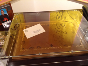 Trong Căn phòng lưu giữ những kỷ vật của Tôi tớ Chúa cố Hồng Y Phanxico Xavie Nguyễn văn Thuận ở Koeln có một kỷ vật đặt trong lồng kính trông như một chiếc cặp da mầu nâu. Nhưng không, đó là một tấm bằng da mầu nâu trông giống như một cái cặp. Tấm đó là tấm lót ở bàn giấy chỗ viết cho giấy nằm yên không bị xê dịch.