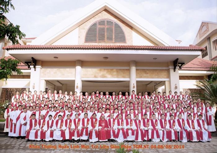 Trong ý hướng đó, năm nay giáo phận Nha Trang đón tiếp 200 linh mục từ 10 giáo phận tham dự Khoá thường huấn. Trong buổi khai mạc tối thứ Hai 4/8/2014, Đức cha Giuse, Giám mục giáo phận Nha Trang chia sẻ: đây là thời gian để quý cha cập nhật thêm những kiến thức và hâm nóng lại tình anh em trong thiên chức linh mục. Ngày chúng ta rời mái trường Chủng viện để dấn thân trong môi trường mục vụ, những công việc, kế hoạch chồng chất lên đôi vai chúng ta… nên đây là thời gian quý báu để các cha gặp gỡ, chia sẻ và sống tình huynh đệ với nhau. Đức cha Giuse mời gọi quý cha tham dự xem đây như là nhà của mình: nghỉ ngơi, bồi bổ sức khỏe, học hỏi và chia sẻ cho nhau những khó khăn trong công việc mục vụ; đặc biệt Đức cha Giuse nhắn nhủ quý cha đừng bận tâm về việc đóng góp chi phí, nhưng xin quý cha cầu nguyện cho Giáo hội Việt Nam, cho hàng giám mục, linh mục, cộng đoàn dân Chúa và giáo phận Nha Trang…
