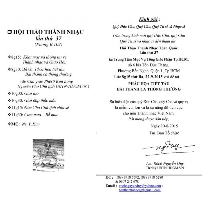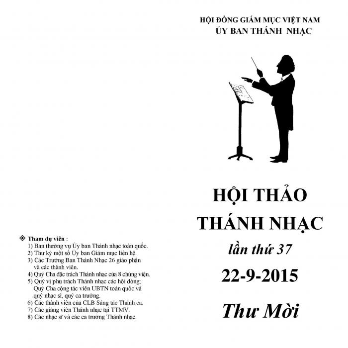 Ủy ban Thánh nhạc: Thư mời tham dự Hội thảo Thánh nhạc toàn quốc lần thứ 37 Ðính Kèm 12018 Ðính Kèm 12019 http://www.hdgmvietnam.org