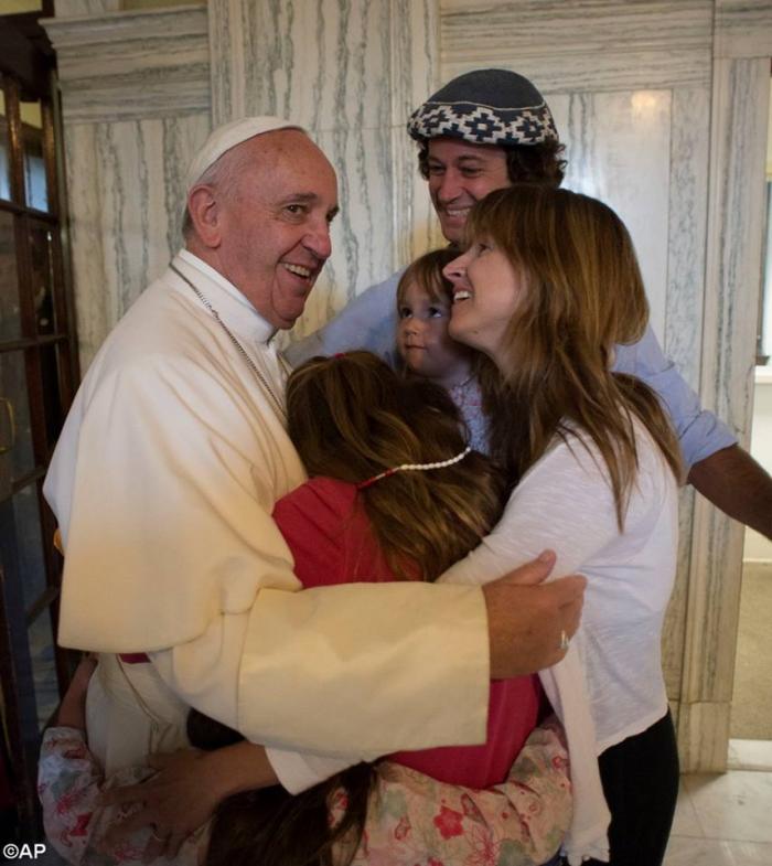 Đức Phanxicô gặp gia đình Catire và Noel Walker và các con, từ trái, Cala, Dimas, Mia và Carmin) ngày chúa nhật tại Đại chủng viện San Carlos Borromeom, Philadelphia. 2