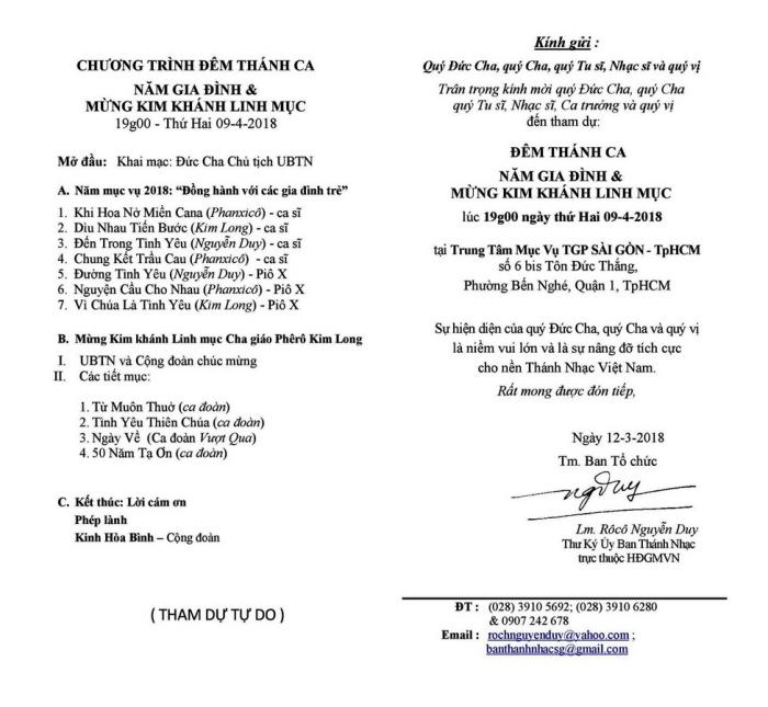 Uỷ ban Thánh nhạc: Thư mời tham dự Đêm Thánh ca “Năm Gia Đình” Ðính Kèm 13894 Ðính Kèm 13895Uỷ ban Thánh nhạc / HĐGMVN