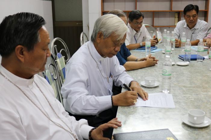 Ðính Kèm 14146LONG XUYÊN - Đúng 17g30 chiều ngày 15/08/2018, khi chuông nhà thờ Chánh tòa reo vang báo lễ chiều mừng đại lễ Đức Mẹ Hồn Xác Về Trời thì tại Trung Tâm Giáo Dục Thường Xuyên, Đức giám mục Chính toà giáo phận, Giuse Trần Xuân Tiếu, đã ký văn bản nhận lại Đại chủng viện Thánh Tôma trước đây.