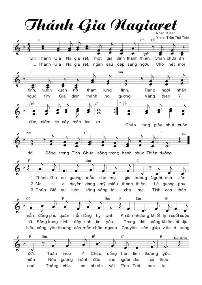 Xin gởi đến các bạn ảnh bản nhạc lễ Thánh Gia Thất