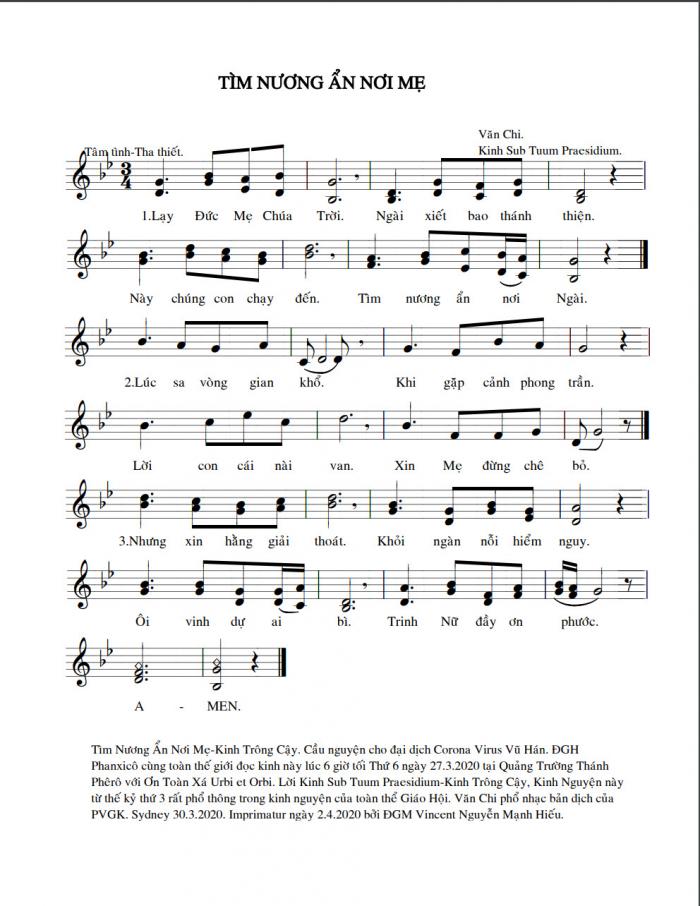 Kinh Sub Tuum Praesidium hay Kinh Trông Cậy, hoặc Tìm Nương Ẩn Nơi Ngài, là Kinh Nguyện cổ xưa cầu nguyện với Đức Trinh Nữ Maria trong cơn gian nan đau khổ. Kinh Nguyện này được khám phá ra tại Ai Cập viết bằng tiếng Hy Lạp trên mảnh giấy làm bằng papyrus vào khoảng năm 200, Thế Kỷ Thứ 3. Kinh Nguyện Sub Tuum Praesidium- Kinh Trông Cậy-Tìm Nương Ẩn Nơi Ngài, là Kinh Nguyện Giáo Dân Việt Nam thường đọc hằng ngày. Đức Giáo Hoàng Phanxicô cùng toàn thể thế giới đọc Kinh Nguyện này trong giờ chầu Thánh Thể và Ngài Ơn Toàn Xá Urbi et Orbi vào lúc 6 giờ chiều Thứ 6 ngày 27.3.2020 tại Quảng Trường Thánh Phêrô, để cầu nguyện cho thế giới mau thoát khỏi cơn Đại Dịch Corona Virus Vũ Hán. Lời Kinh Nguyện sốt sắng dâng lên Hiền Mẫu Maria trong niềm trông cậy và phó thác trọn vẹn.