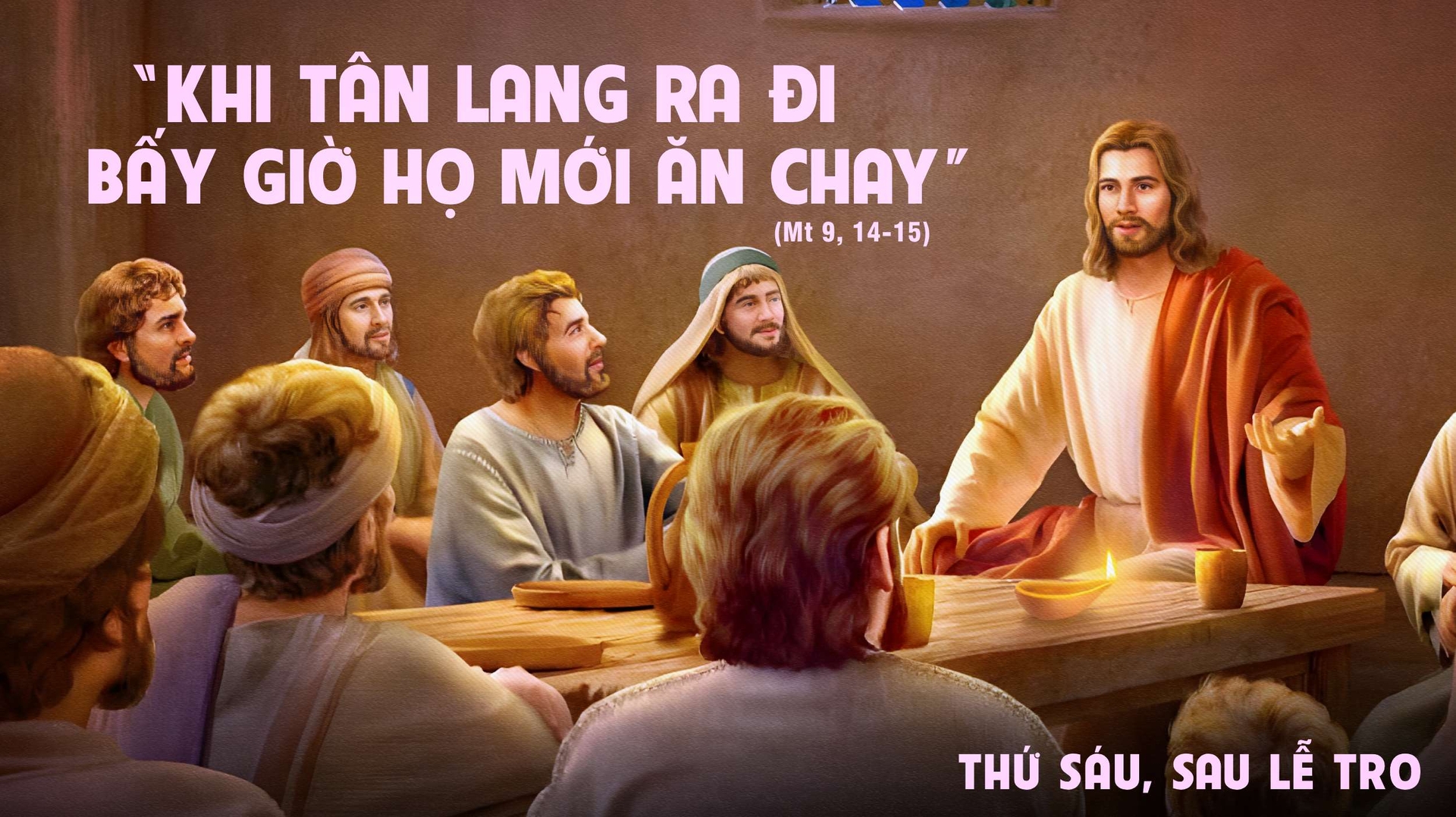 Khi các môn đệ của Thầy không ăn chay theo phong tục khổ hạnh, họ đã thắc mắc. Đức Giêsu đáp lại bằng câu hỏi: “Khách dự tiệc cưới có thể than khóc khi chàng rể còn ở với họ sao?” Qua đó, Ngài muốn nói rằng khi chàng rể (Chúa Giêsu) hiện diện, niềm vui và sự ấm áp của tình thân là ưu tiên hàng đầu. Thời gian được sống trong ân điển của Ngài chính là thời gian của hạnh phúc trọn vẹn.