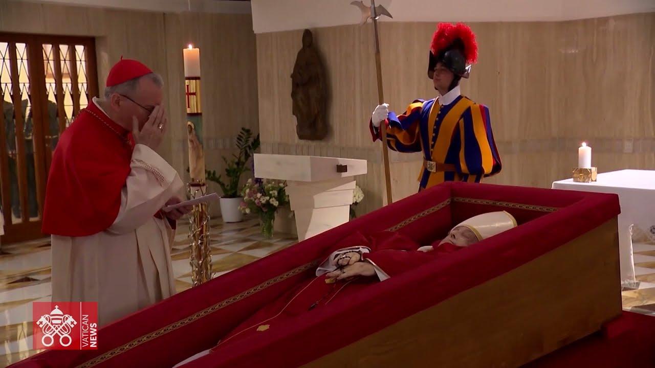 Vị trí thi hài: Theo cải cách của Giáo hoàng Francis, thi hài không còn được đặt trên bệ cao (catafalque) như truyền thống mà nằm trong quan tài mở nắp, nhấn mạnh sự khiêm nhường và gần gũi với dân chúng.