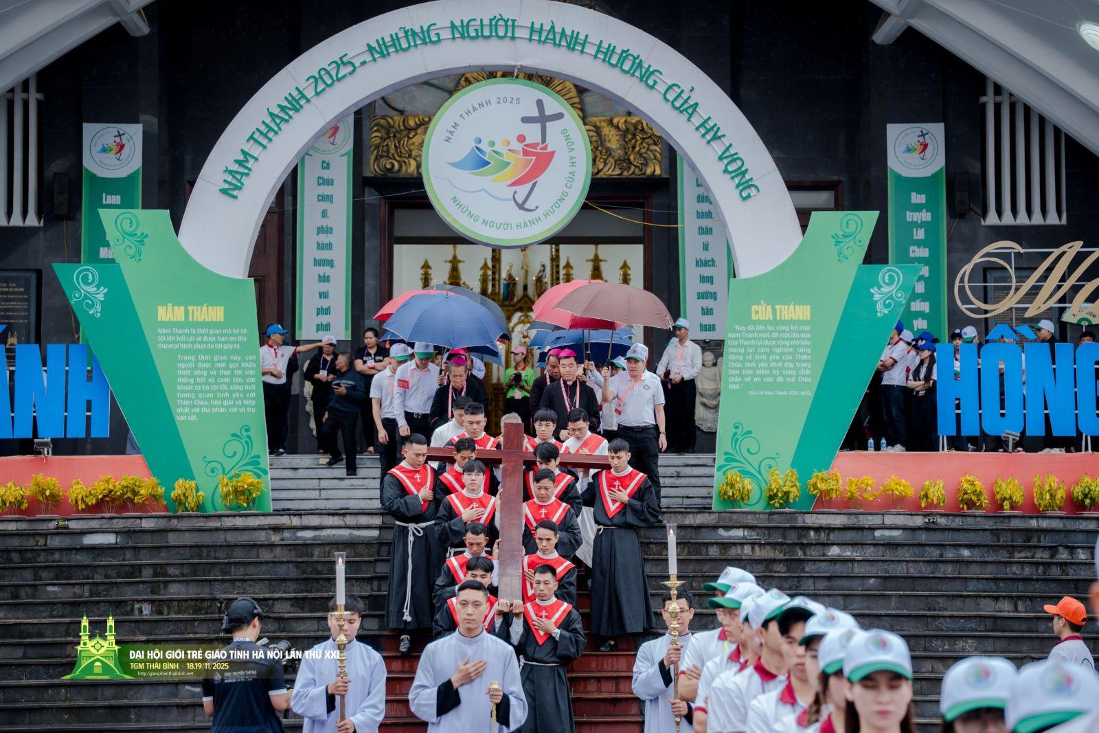 Đại hội Giới trẻ Giáo tỉnh Hà Nội lần thứ XXI với chương trình nội bộ của Giáo phận Thái Bình trong buổi sáng cùng ngày, đã bắt đầu với nghi thức Rước Thánh Giá long trọng từ Dòng nữ Đa-minh Thái Bình ra Nhà thờ Chính toà Thái Bình. Thánh Giá Chúa Kitô được cung nghinh ra khỏi Nhà Dòng với một ý nghĩa thiêng liêng sâu sắc: đồng hành cùng toàn thể Giới trẻ Giáo tỉnh Hà Nội trong suốt hai ngày diễn ra Đại hội tại Toà Giám mục Thái Bình.