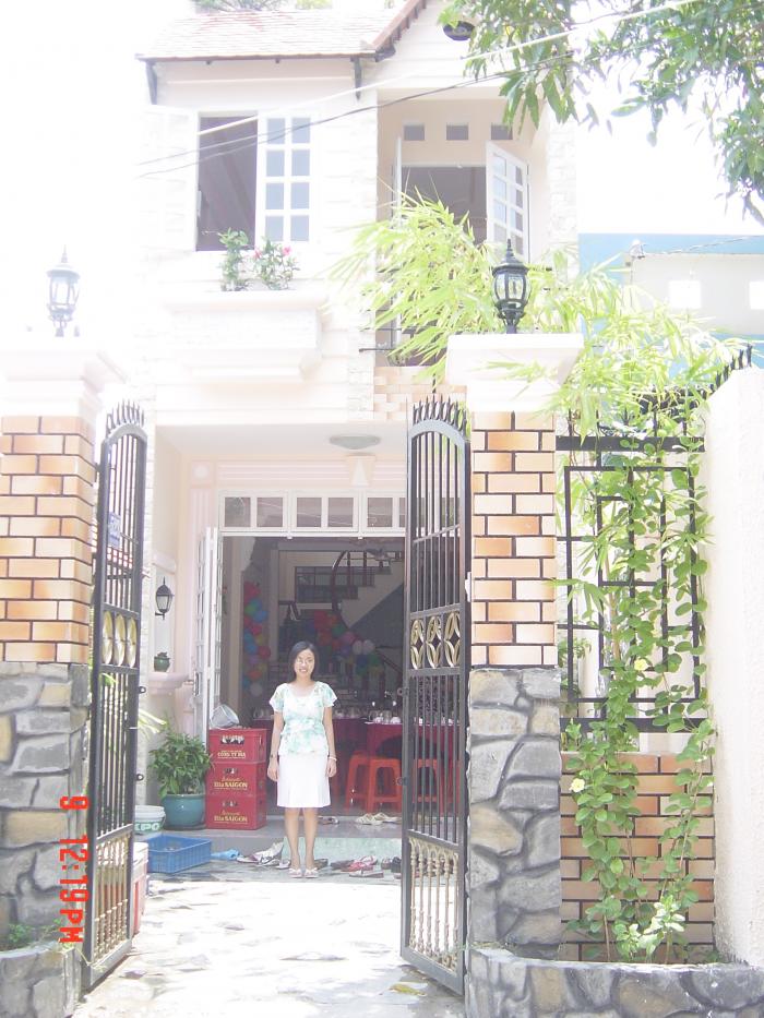 Nhà mới xây 2 tầng theo kiểu kiến trúc đông tây kết hợp (theo như lời của cậu con trai thứ 3, kỹ sư thiết kế ngôi nhà). Sự kết hợp thể hiện ở chỗ mái ngói (P.Đông) và mặt tiền xi măng đúc tạo hình giả gỗ (PTây). Toàn bộ cửa nhà được sơn màu trắng theo ý thích của cô con gái út. Màu trắng làm cô mơ tới một thiên đường, nơi mà cả gia đình được sống hạnh phúc bên nhau. Phía trước nhà là 1 khu vườn - tạm gọi là thế vì thực ra nó chỉ là một khoảng sân nhỏ để trồng cây. Một bên là bồn hoa được trang trí bằng những viên sỏi trắng chung quanh. Phía trên nó là mái ngói màu nâu đỏ để che nắng cho những giò phong lan được chăm bón cẩn thận. Phía bên này sân là 1 hồ cá nho nhỏ với vài hòn non bộ do nhà tự làm lấy. Thêm vào đó là một vài cây hoa súng, tím có, hồng có mà cậu con trai thứ 2 đã lặn lội đem từ tận Bến Tre về. Mà giống súng này rất ngộ, ngày nắng thì nở hoa to, cành vươn thẳng lên đón ánh mặt trời. Hể trời có xế chiều 1 tí và nhất là khi đêm về hẳn, hoa xếp cánh lại nằm rũ trong mặt hồ như muốn uống nước thật nhiều sau một ngày căng mình đón nắng và gió trời. Đằng trước là 4 bồn hoa, 2 cái ở trong và 2 ở ngoài cổng chính. Nói là bồn hoa nhưng nó lại được trồng cay cau, cây trúc, cây hoa ngọc lan và một loại cây leo không rõ tên có hoa màu vàng nho nhỏ nhìn thoáng qua trông giống như 1 cái kèn. Trông sân còn có vô số các loại hoa như hồng môn, hồng tỉ muội, hoa lài, hoa sứ, hoa mười giờ... mà mỗi loại hoa là mỗi lần bà chủ nhà cất công đi sưu tầm, hoặc mua, hoặc xin về được. Trồng hoa và chăm sóc hoa không chỉ thoả thú vui của bà, là niềm yêu thích của các con bà, mà là nơi để bà dưỡng những loại lá đệm mà ngoài tiệm ít khi nào bán để bổ sung vào bình hoa bà cắm mỗi ngày.