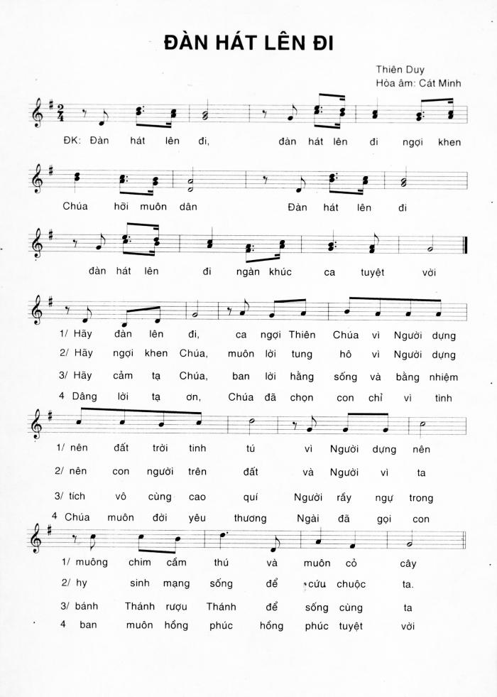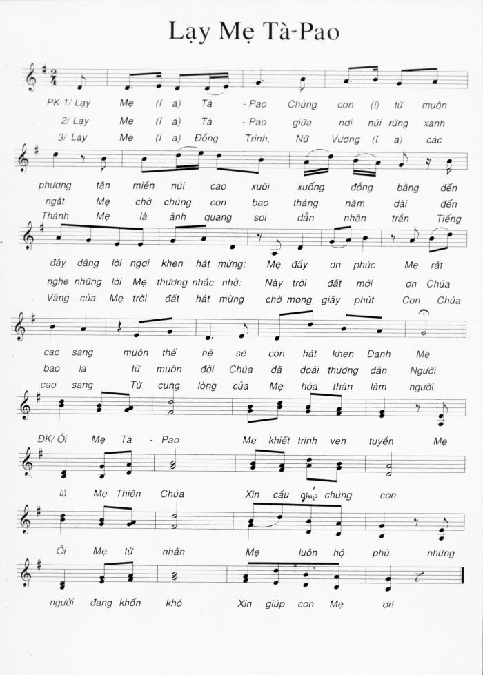 Xin giới thiệu đến quý Cha và toàn thể quý vị một số bài hát đã được giáo quyền chuẩn thuận và cho phép sử dụng trong phụng vụ. Hôm nay xin phép được gửi lên diễn đàn TCVN trước 2 bài : bài Đàn hát lên đi và bài Lạy Mẹ Tà Pao.
