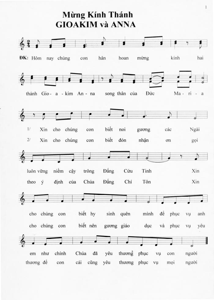 bài Hãy reo vui, bài Mừng kính Thánh Gioakim và Anna, bài Thánh Mẫu La Vang và bài Như làn hương trầm.