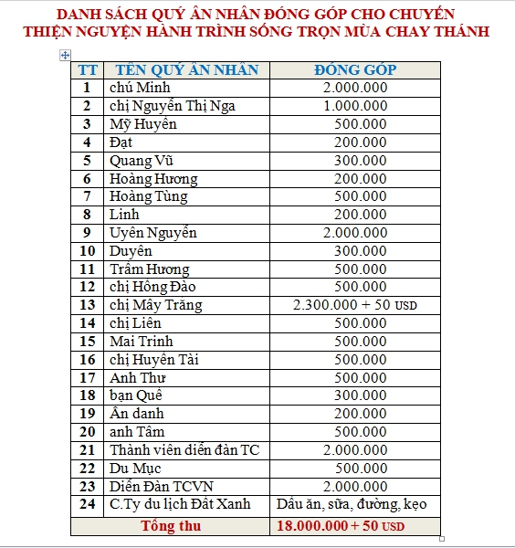 Danh sách đóng góp của Quý vị ân nhân, chi tiết thu chi cho chuyến đi thiện nguyện và một vài hình ảnh trong chuyến đi. |