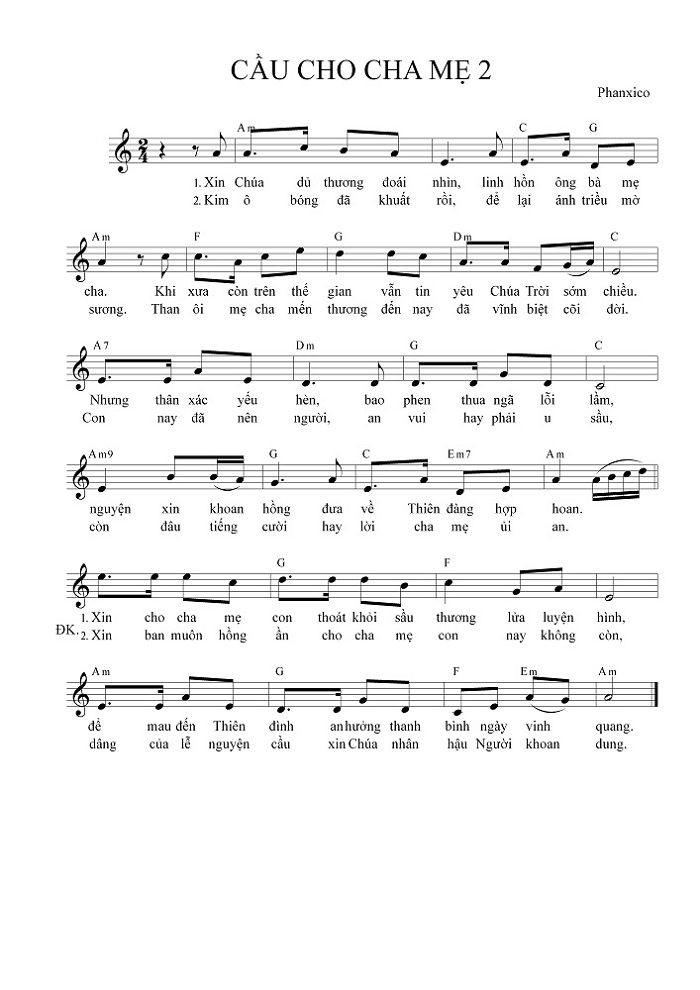 Bài hát CẦU CHO CHA MẸ 2 của nhạc sĩ Phanxico dường như chỉ có 2 phiên khúc thôi bạn à
