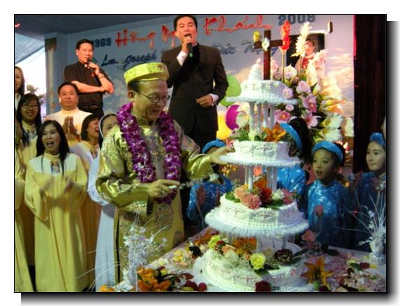 LAS VEGAS - Thứ Bảy ngày 30 tháng 5 năm 2009: Trong tâm tình hân hoan ngập tràn cảm mến, biết ơn, ngưỡng mộ, gần 20 linh mục và hơn 500 giáo dân từ mọi nẻo đường đất nước về đây hiệp dâng Thánh Lễ Tạ Ơn cùng linh mục Giuse Nguyễn Đức Trọng, Giám-Đốc Đền Thánh Mẹ La-Vang để dâng lời cảm tạ Chúa qua Mẹ đã che chở, gìn giữ ngài trong 40 năm linh mục được vuông tròn trong chúc vụ và nhiệm vụ phục vụ Chúa và Giáo Hội cùng giáo dân. Sau Thánh Lễ là Tiệc Mừng rất thịnh soạn ngay tại Đền Thánh với 560 thực khách và những tiết mục văn nghệ giúp vui rất tuyệt vời với sự góp mặt ca đoàn La Vang, các em Thiếu Nhi Thánh Thể và Giáo Lý Việt Ngữ, Cha Joseph Đồng Minh Quang, MC, cha Tiến Linh, ca sĩ Kim Thuý v.v.