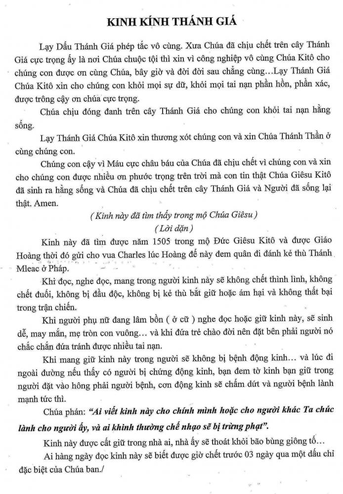 Tôi đã được một chị trong Giáo xứ tặng cho tôi Kinh quý giá này. Tôi muốn được chia sẻ cùng Quý anh chị em trong diễn đàn để cùng nhau tôn sùng dấu Thánh Giá để chúng ta cùng được hưởng nhờ Hồng ân Thiên Chúa ban cho chúng ta.