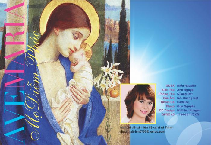 ** Album được phát hành vào ngày 19/5 và bán tại các Nhà sách Công Giáo khắp nơi. Mong đón nhận được sự ủng hộ từ Quý ACE với Album " AVEMARIA MẸ DIỄM PHÚC " của Ca sỹ Ái Trinh. Xin cảm ơn Quý ACE.