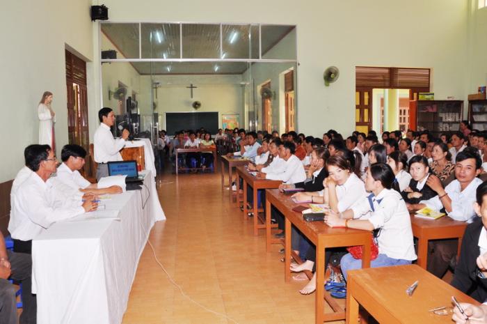 Trong kế hoạch đào tạo giáo lý viên phổ thông (GLV) của Ban Giáo lý Giáo phận Ban Mê Thuột và chương trình hoạt động hè 2012 của Ban Giáo lý Giáo hạt Quảng Đức (BGL/QĐ), sáng nay, 03/07/2012 tại hội trường giáo xứ Vinh Hương đã diễn ra buổi khai mạc Khoá Đào Tạo GLV Sơ cấp do Ban Giáo lý giáo hạt tổ chức.