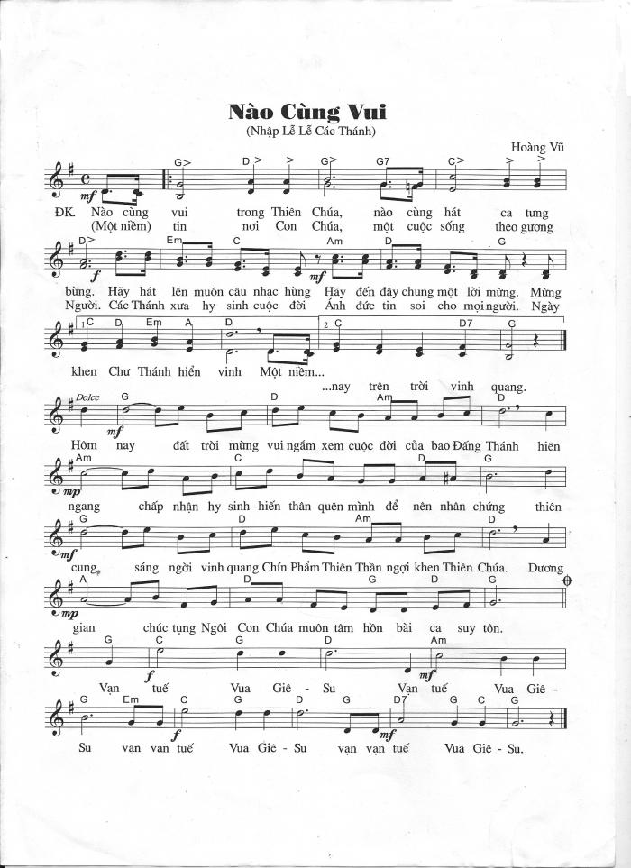 Em cho rằng em đã nói không sai khi viết rằng chị cat quá dư khả năng để đọc ký âm bất kỳ một bản thánh ca nào. Nhưng sở dĩ chị nêu đề tài này ra, vì bản thánh ca Nào cùng Vui này đã có một sự khang khác, rồi vì sự khang khác đó khiến cho người đọc cảm thấy chưa phân định rõ rệt hướng nào để đi!
