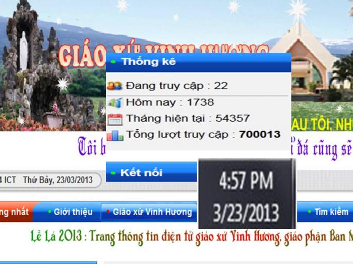 Vào lúc 16 giờ 57 phút ngày 23.03.2013, trang tin đã có 700.013 lượt khách truy cập, một con số ngoài sự mong đợi của Ban biên tập (BBT). Trong số độc giả đó, có những phản hồi tích cực, khích lệ để gxvinhhuong.net ngày càng thăng tiến.