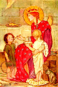Có hai cách thi hành việc bác ái: cách "sạch sẽ" và cách "bẩn thỉu." Cách "sạch sẽ" là tặng tiền bạc, quần áo cho các tổ chức phục vụ người nghèo. Cách "bẩn thỉu" là dùng chính bàn tay của mình để phục vụ mà không sợ dơ bẩn. Nhân đức trổi vượt của Thánh Margaret là lòng thương người nghèo. Mặc dù rất giầu sang, nhưng ngài đã đích thân thăm viếng người bệnh hoạn và chăm sóc họ với chính đôi tay của mình. Trong mùa Vọng và mùa Chay, hai ông bà đã quỳ xuống để phục vụ các trẻ em mồ côi và người nghèo hèn. Giống như Ðức Kitô, bà đã thi hành bác ái trong phương cách "bẩn thỉu."
