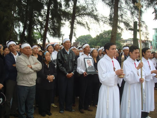 PS. GIA ĐÌNH LÊ BẢO TỊNH PHỤ TRÁCH HÁT LỄ AN TÁNG VÀ DI QUAN NGÀI RA TRƯỚC TIỀN ĐƯỜNG NHÀ THỜ,