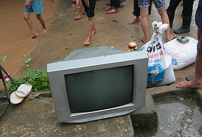 Nhiều hộ gia đình ở những nơi cao ráo ngày hôm qua còn cho để nhờ đồ đạc, nông sản của những gia đình bị ngập, giờ đã lục đục thu gom mọi thứ, sẵn sàng để đối phó với tình huống xấu nhất.