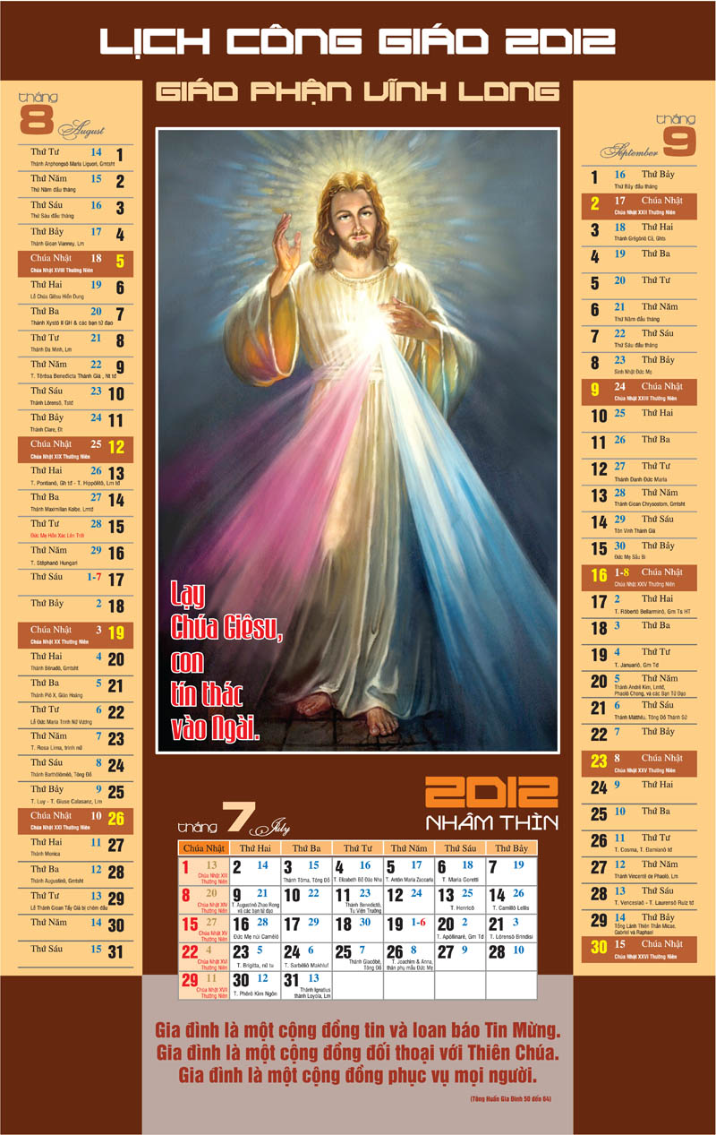 Chủ đề: LỊCH CÔNG GIÁO NĂM 2012