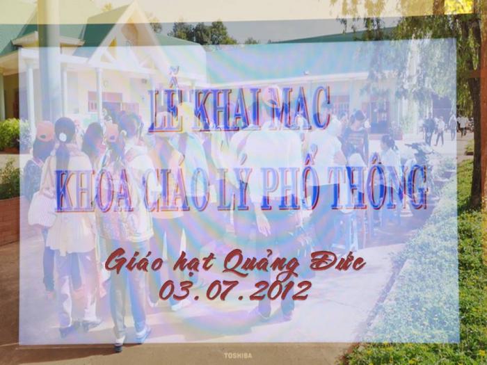 Lớp học do Ban Điều hành Giáo lý hạt Quảng Đức tổ chức và kéo dài cho đến chiều ngày 07/07/2012. Đây là khoá đào tạo GLV Sơ cấp thứ 2 trong kỳ hè này, sau khoá đầu được tổ chức tại giáo hạt Daklak 1 cách nay không lâu.