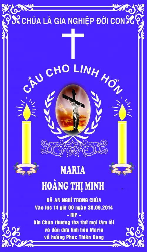 Xin Gia Đình TCVN cầu nguyện cho linh hồn MARIA Hoàng Thị Minh |